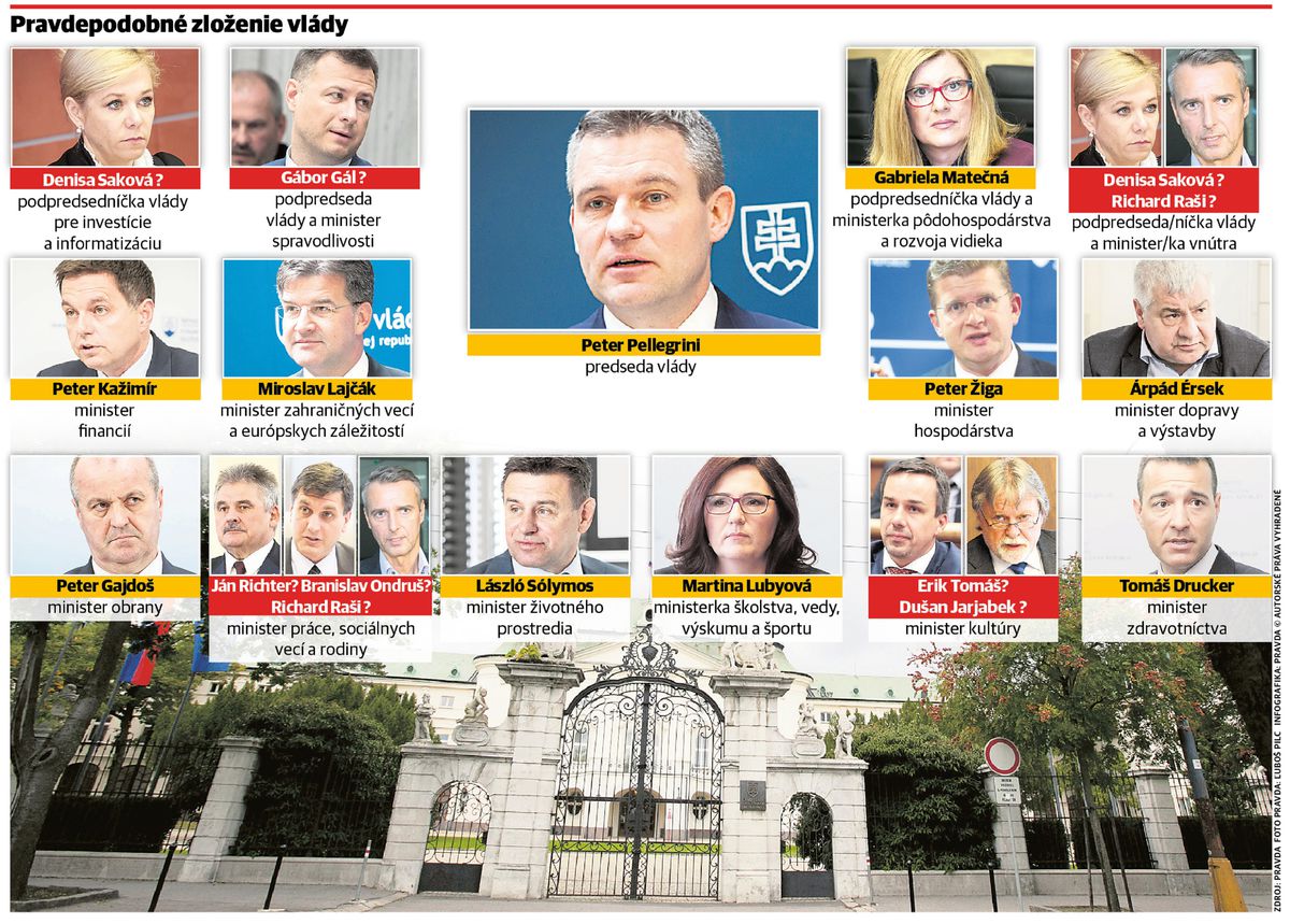 Rozhovory o obsadení ministerských postov sa začali dnes a pokračovať budú aj cez víkend. Vláda premiéra Pellegriniho by sa mala ujať úradu už na budúci týždeň. Po vymenovaní kabinetu prezidentom Andrejom Kiskom začne následne rokovať parlament o tom, či mu vysloví dôveru. K ďalšej zmene za Smer má dôjsť na ministerstve práce sociálnych vecí a rodiny, ktoré doteraz vedie Ján Richter. Už spomínaný Raši je v hre aj na túto pozíciu, ak by neobsadil vnútro. Kandidátom je aj štátny tajomník tohto rezortu Branislav Ondruš.