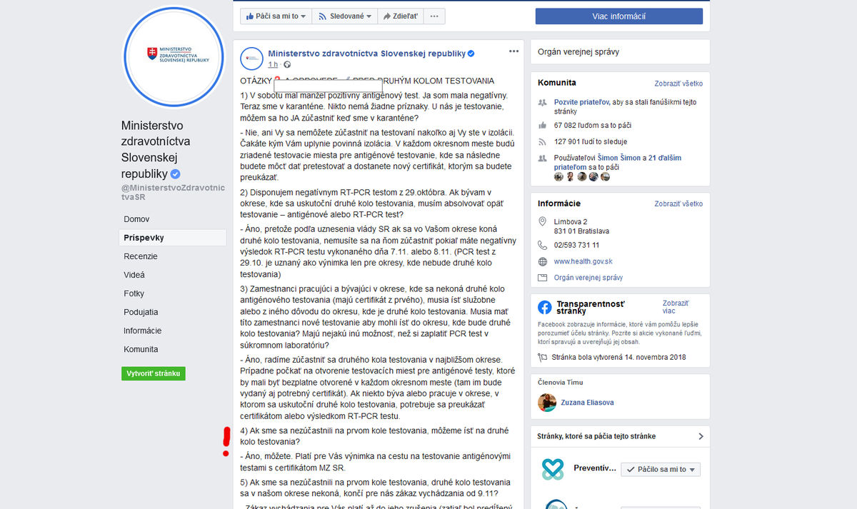 Ministerstvo zdravotníctva má teraz na stránke definitívne platný status, že testovať sa môžu aj netestovaní v prvom kole. Je okorenený diskusnými príspevkami o chaose, ktorý protichodnými informáciami ministerstvo vyvolalo.