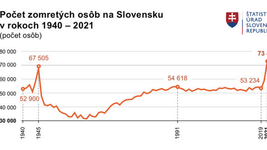 „Pandémia spôsobila výrazné zvýšenie mier úmrtnosti na Slovensku, už v roku 2020 prekročil počet zomretých hodnotu tisíc úmrtí na stotisíc obyvateľov a v roku 2021 sa zvýšil až na 1 350. Ide naozaj o najvyššiu hrubú mieru úmrtnosti v povojnovej histórii Slovenska,“ povedala Zuzana Podmanická, riaditeľka odboru štatistiky obyvateľstva.