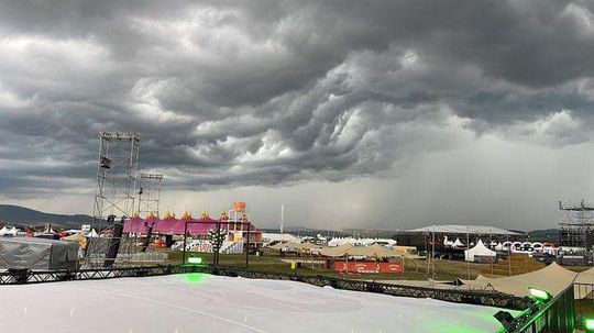 To sa zakrátko aj potvrdilo, keď jeden zo stanov v areáli festivalu odfúklo. Poveternostná situácia spojená s búrkovou činnosťou by mala podľa organizátorov trvať asi hodinu.