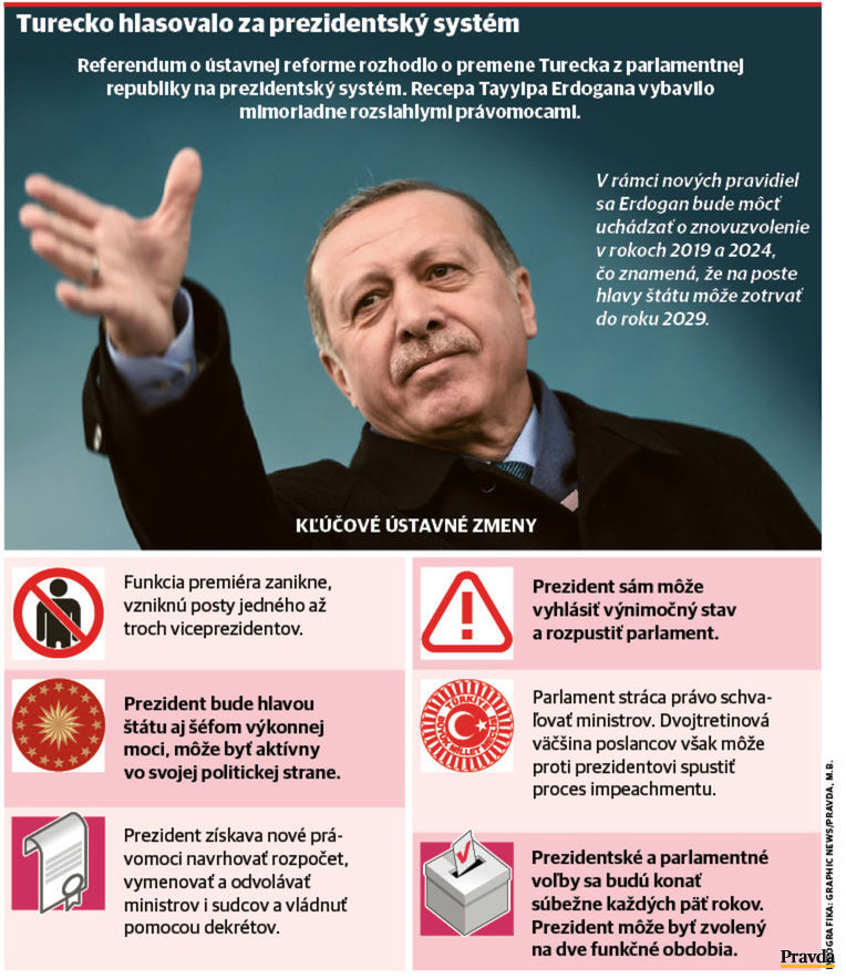 Kým jeho stúpenci v uliciach mávali vlajkami, odporcovia z okien protestovali búchaním do hrncov a panvíc. Rozhodovanie o prerode Turecka z parlamentnej republiky na prezidentskú rozpoltilo krajinu.