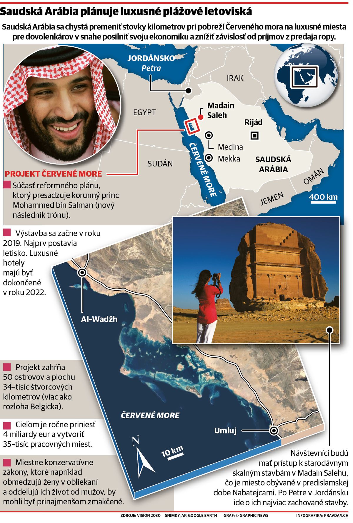 Za projektom Červeného mora stojí korunný princ Mohammed bin Salman, ktorý o ňom informoval. Jeho otec kráľ Salman z neho urobil následníka trónu pred necelými dvomi mesiacmi. Princ, ktorý koncom augusta oslávi 32. narodeniny, sa spolieha, že luxusné letoviská vytvoria 35-tisíc pracovných miest, a hlavne ročne prinesú v prepočte okolo štyroch miliárd eur. Výstavba sa začne o dva roky a v roku 2022 by mali pricestovať prví turisti.
