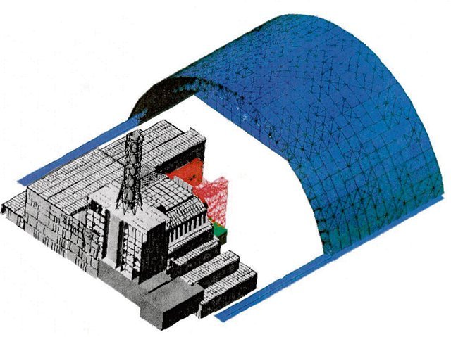Pôvodný kryt nad reaktorom bol narýchlo postavený krátko po havárii v jadrovej elektrárni v roku 1986. Neskôr nad ním postavili novú oblúkovitú oceľovú konštrukciu, ktorá starý sarkofág úplne zakryla.