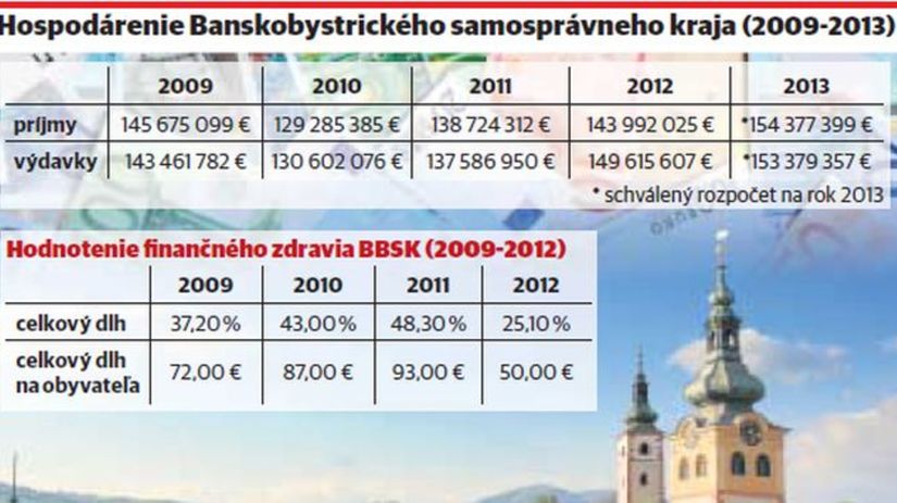 Ešte pred dvoma rokmi župu zaťažovali súdne spory či záväzky za nemocnice zrušené ešte v roku 2005. Znižovanie dlhu však v roku 2011 až 2012 išlo ruka v ruke so znížením kvality poskytovaných služieb obyvateľom kraja. Župa tiež znížila počet vozidiel vo vozovom parku úradu. Kraj takisto spájal základné a stredné školy, ale aj niektoré sociálne zariadenia. Ešte v roku 2011 sa spojilo viacero škôl v Rimavskej Sobote, Banskej Bystrici, Poltári, Banskej Štiavnici a vo Zvolene. Optimalizácia priniesla úsporu prevádzkových nákladov zhruba milión eur ročne.